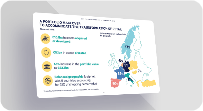 2017 FULL-YEAR EARNINGS — FEBRUARY 8, 2018 A PORTFOLIO MAKEOVER TO ACCOMMODATE THE TRANSFORMATION OF RETAIL Since end 2012: Value of Klépierre’s mall portfolio by geography €10.1bn in assets acquired or developed 17% €5.1bn in assets divested 45%increase in the portfolio value 6% to €23.7bn 5% 39% 7% Balanced geographic footprint, with 9 countries accounting 17% for 92% of shopping center value1 10% 1 France, Italy, Spain, Norway, the Netherlands, Sweden, Denmark, Germany, and Czech Republic. 11
