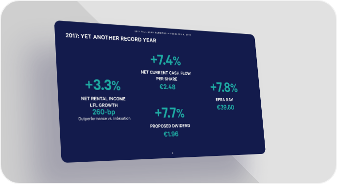 2017 FULL-YEAR EARNINGS — FEBRUARY 8, 2018 2017: YET ANOTHER RECORD YEAR +7.4% NET CURRENT CASH FLOW PER SHARE +3.3% €2.48 +7.8% NET RENTAL INCOME EPRA NAV LFLGROWTH €39.60 260-bp +7.7% Outperformance vs. indexation PROPOSED DIVIDEND €1.96 6