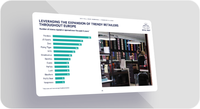 2017 FULL-YEAR EARNINGS — FEBRUARY 8, 2018 LEVERAGING THE EXPANSION OF TRENDY RETAILERS THROUGHOUT EUROPE Number of stores signed or opened over the past 2 years1 Pandora 22 JD Sports 17 Zara 16 Flying Tiger 14 NYX 12 Stradivarius 10 Bershka 9 Guess 8 Parfois 8 Lush 8 Skechers 8 Pull & Bear 5 Nespresso 5 1 New store and new concept implementation. 32