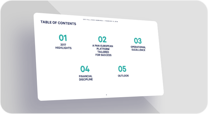 2017 FULL-YEAR EARNINGS — FEBRUARY 8, 2018 TABLE OF CONTENTS 01 02 03 2017 A PAN-EUROPEAN OPERATIONAL HIGHLIGHTS PLATFORM EXCELLENCE TAILORED FOR SUCCESS 04 05 FINANCIAL OUTLOOK DISCIPLINE 3