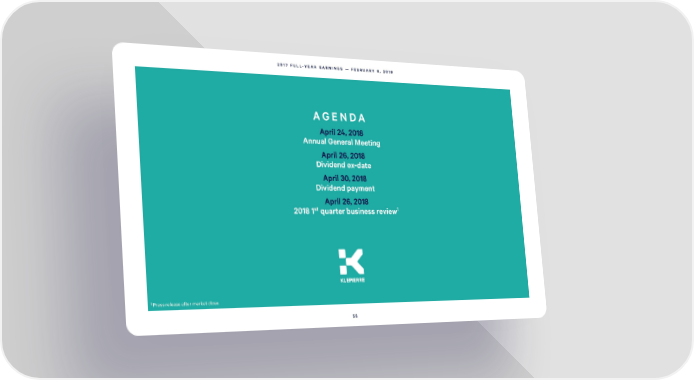 2017 FULL-YEAR EARNINGS — FEBRUARY 8, 2018 AGENDA April 24, 2018 AnnualGeneral Meeting April 26, 2018 Dividend ex-date April 30, 2018 Dividend payment April 26, 2018 st quarter business review1 2018 1 1 Press release after market close. 55