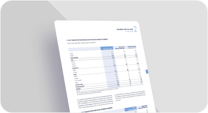 BUSINESS FOR THE YEAR Business overview 2 3 LAST 12-MONTH RETAILER SALES LIKE-FOR-LIKE CHANGE BY COUNTRY Year-on-year retail sales change through full-year 2017 Share in total Like-for-like change Like-for-like change(a) Reported retailer sales (excluding extensions) France 2.4% 31% 0.9% Belgium -1.6% 2% -1.6% France-Belgium 2.2% 33% 0.7% Italy -0.1% 25% -0.1% Norway -1.6% 9% -1.6% Sweden 1.5% 7% 1.5% Denmark -1.4% 4% -1.4% Scandinavia -0.4% 20% -0.4% Spain 4.5% 7% 4.5% Portugal 4.7% 3% 4.7% Iberia 4.6% 10% 4.6% Poland 4.3% 3% 4.3% Hungary 10.9% 2% 10.9% Czech Republic 5.2% 2% 5.2% Turkey 9.8% 2% 9.8% CEE and Turkey 7.2% 9% 7.2% The Netherlands(b) NS NS NS Germany 1.9% 3% 1.9% TOTAL 2.1% 100% 1.3% (a) Like-for-like change is on a same-center basis and excludes the impact of asset sales and acquisitions. (b) Only a few Dutch retailers report their sales to Klépierre. On a segment basis, health & beauty (12% of total sales) was the best remained solid in France, Sweden, and CEE & Turkey, though growth performing segment with 3.5% growth, followed by food & restaurant was negative in Norway and Denmark due to adverse weather effects (11% of total sales), for which sales grew by 3.3% thanks to Klépierre’s in the first six months. Culture & leisure (18% of total sales) sales were Destination Food® strategy roll-out across the portfolio. Fashion sales up by 1.6%. (40% of total sales) grew by 2.6% for the entire portfolio total and 3 LAST 12-MONTH RETAILER SALES CHANGE BY SEGMENT FY 2017 Share in total Like-for-like change Reported retailer sales Fashion 2.6% 40% Culture, Gifts & Leisure 1.6% 18% Health & Beauty 3.5% 12% Food & Restaurants 3.3% 11% Household equipment -1.6% 12% Others 2.3% 8% TOTAL 2.1% 100% 2.1.3 Gross rental income 3 GROSS RENTAL INCOME (ON A TOTAL-SHARE BASIS) In €m 12/31/2017 12/31/2016 Current change France-Belgium 438.1 428.4 2.3% Italy 210.3 204.7 2.7% Scandinavia 192.5 197.6 -2.6% Iberia 123.6 113.1 9.3% CEE and Turkey 124.5 121.3 2.7% The Netherlands 64.6 61.1 5.8% Germany 54.4 57.2 -4.8% TOTAL SHOPPING CENTERS 1,208.0 1,183.4 2.1% Other retail properties 28.0 30.6 -8.7% TOTAL 1,236.0 1,214.0 1.8% KLÉPIERRE 2017 REGISTRATION DOCUMENT 43