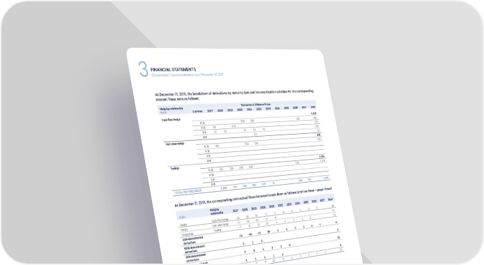 FINANCIAL STATEMENTS 3Consolidated financial statements as of December 31, 2017 At December 31, 2016, the breakdown of derivatives by maturity date and the amortization schedule for the corresponding interest flows were as follows: Hedging relationship Derivatives of Klépierre Group In €m Currency 2017 2018 2019 2020 2021 2022 2023 2024 2025 2026 2027 Total Cash-flow hedge 1,229 EUR 200 350 114 664 NOK 96 176 272 SEK 52 21 63 63 31 230 DKK 63 63 Fair value hedge 935 EUR 585 250 100 935 NOK SEK DKK Trading 2,124 EUR 564 700 260 400 200 2,124 NOK SEK DKK TOTAL FOR THE GROUP 1,298 721 436 913 576 31 200 114 4,288 At December 31, 2016, the corresponding contractual flows (interest) break down as follows (positive flows = payer flows): Hedging In €m relationship 2017 2018 2019 2020 2021 2022 2023 2024 2025 2026 2027 Total Swaps Cash-flow hedge 10 10 10 3 0 -0 -0 -1 -1 -1 30 Swaps Fair value hedge -17 -12 -12 -5 -1 -47 Swaps/cap Trading -7 -8 -9 22 4 4 3 3 0 11 EUR-denominated derivatives -14 -10 -11 19 4 4 3 2 -1 -1 -5 NOK-denominated derivatives 3 1 0 5 SEK-denominated derivatives 7 5 4 3 1 0 20 DKK-denominated derivatives 1 1 1 1 1 6 TOTAL FOR THE GROUP -2 -2 -5 23 6 4 3 2 -1 -1 26 Fair value of the interest rate hedging portfolio In €m Fair value net of accrued interest as of 12/31/2017 Change in fair value during 2017 Counterparty Cash-flow hedge -21.7 39.1 Shareholders’ equity Fair value hedge 28.8 -18.1 Borrowings Trading 2.3 11.3 Earnings TOTAL 9.5 32.3 100 KLÉPIERRE 2017 REGISTRATION DOCUMENT
