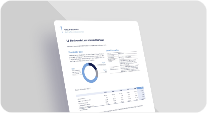 GROUP OVERVIEW 1 Stock market and shareholder base 1.3 Stock market and shareholder base Klépierre shares are admitted to trading on compartment A of Euronext Paris. Shareholder base Stock information Klépierre’s largest shareholders are Simon Property Group, American ISIN code FR0000121964 group and world leader in the shopping center industry and APG, Mnemonic code LI a Netherlands-based pension fund firm. More than two-thirds are Trading market Euronext Paris – Compartment A free-float, mainly held by institutional investors. Number of shares 314,356,063 20,3 % Indexes SBF80, EURONEXT 100, S.I.I.C. FRANCE, CAC Simon Property Group ALL SHARES, CAC FINANCIALS, CAC REAL ESTATE, DJ STOXX 600, EPRA Eurozone, GPR 66,1 % 250 Index, CAC Next 20 Other shareholders Sustainable FTSE4Good, DJSI Europe & World index, STOXX® (free-float, including 13,5 % development indexes Global ESG Leaders, Euronext Vigeo France 20, treasury shares) APG Europe 120 & World 120, Ethibel Sustainability Index Excellence Europe and Global, CDP’s A List Data as of December 31, 2017. 2012 2013 2014 2015 2016 2017 Close price (in €) 30.020 33.685 35.730 40.990 37.345 36.665 Market capitalization (in €bn) 6.0 6.7 7.1 12.9 11.7 11.5 Year-on-year change +36.2% +12.2% +6.1% +14.7% -8.9% -1.8% % change in CAC 40 index +15.2% +18.0% -0.5% +8.5% +4.9% 9.30% % change in EPRA Eurozone index +21.8% +1.8% +18.1% +13.3% +1.0% 13.2% Source: Bloomberg. For more information, please refer to section 6 of this registration document, “Capital, Shareholding, General Meeting of Shareholders”. 10 KLÉPIERRE 2017 REGISTRATION DOCUMENT