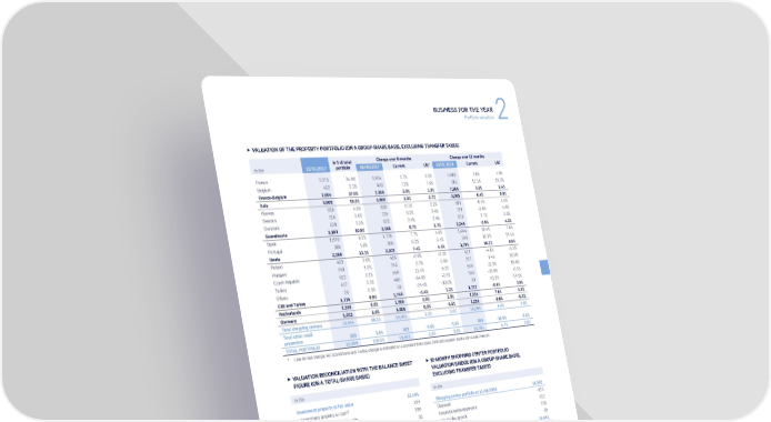 BUSINESS FOR THE YEAR Portfolio valuation 2 3 VALUATION OF THE PROPERTY PORTFOLIO (ON A GROUP-SHARE BASIS, EXCLUDING TRANSFER TAXES) In % of total Change over 6 months Change over 12 months In €m 12/31/2017 portfolio 06/30/2017 Current LfL* 12/31/2016 Current LfL* France 7,073 34.9% 6,954 1.7% 1.0% 6,880 2.8% 1.9% Belgium 432 2.1% 403 7.2% 7.4% 385 12.1% 11.2% France-Belgium 7,504 37.0% 7,356 2.0% 1.3% 7,265 3.3% 2.4% Italy 3,900 19.3% 3,806 2.5% 2.7% 3,665 6.4% 6.9% Norway 819 4.0% 819 -0.1% 2.2% 895 -8.5% 4.5% Sweden 726 3.6% 725 0.2% 3.4% 738 -1.6% 4.8% Denmark 638 3.2% 623 2.4% 2.4% 616 3.7% 3.6% Scandinavia 2,183 10.8% 2,168 0.7% 2.7% 2,249 -2.9% 4.3% Spain 1,870 9.2% 1,736 7.7% 4.0% 1,444 29.4% 7.8% Portugal 389 1.9% 366 6.2% 5.4% 346 12.3% 11.4% Iberia 2,258 11.1% 2,102 7.4% 4.3% 1,791 26.1% 8.5% Poland 403 2.0% 416 -2.9% -3.1% 423 -4.8% -5.2% Hungary 248 1.2% 243 2.2% 5.6% 227 9.4% 12.9% Czech Republic 622 3.1% 559 11.4% 6.2% 509 22.3% 16.6% Turkey 417 2.1% 490 -14.9% -2.3% 540 -22.8% -5.5% Others 25 0.1% 33 -24.4% -13.0% 33 -23.3% -14.2% CEE and Turkey 1,715 8.5% 1,740 -1.4% 1.2% 1,732 -0.9% 3.8% Netherlands 1,330 6.6% 1,280 3.9% 2.9% 1,234 7.8% 3.2% Germany 1,012 5.0% 1,009 0.3% -1.5% 1,021 -0.8% -5.1% Total shopping centers 19,904 98.2% 19,461 2.3% 2.0% 18,956 5.0% 3.9% Total other retail properties 355 1.8% 362 -1.8% -1.5% 399 -10.9% -2.5% TOTAL PORTFOLIO 20,259 100.0% 19,823 2.2% 2.0% 19,354 4.7% 3.8% * Like-for-like change. For Scandinavia and Turkey, change is indicated on a constant forex basis. Central European assets are valued in euros. 3 VALUATION RECONCILIATION WITH THE BALANCE SHEET 3 12-MONTH SHOPPING CENTER PORTFOLIO FIGURE (ON A TOTAL-SHARE BASIS) VALUATION BRIDGE (ON A GROUP-SHARE BASIS, EXCLUDING TRANSFER TAXES) In €m In €m Investment property at fair value 21,494 (a) 123 Shopping center portfolio at 12/31/2016 18,956 + Investment property at cost + Fair value of property held for sale 296 Disposals -113 + Leasehold & lease incentives 36 Acquisitions/developments 312 + Transfer taxes optimization 433 Like for like growth 376 + Partners’ share in assets consolidated under the Forex -70 equity method (incl. receivables) 1,389 Shopping center portfolio at 06/30/2017 19,461 TOTAL PORTFOLIO 23,770 Disposals -47 (a) Including IPUC (Investment property under construction). Acquisitions/developments 155 Like-for-like growth 391 2.6.2.1.1 Shopping center portfolio valuation Forex -56 Excluding transfer taxes, the value of the shopping center portfolio SHOPPING CENTER PORTFOLIO AT 12/31/2017 19,904 was €23,415 million on a Total-Share basis (€19,904 million, on a Group-Share basis) on December 31, 2017, an increase of €997 million As of December 31, 2017, the average EPRA NIY rate(2) of the portfolio(3) compared to December 31, 2016 (+€948 million on a Group-Share stood at 4.8% (including transfer taxes), down by 10 basis points over basis). 12 months. (1) This change is mostly attributable to the like-for-like increase in the portfolio valuation for 4.0% (+3.9% in Group share), with the largest contributors to growth on a regional basis being Iberia (+8.5%), Italy (+6.8%), and Scandinavia (+4.3%). A 10-bp change in the average EPRA net initial yield would result in a 386-million euros change in the Group-Share portfolio valuation. (1) Excluding foreign exchange impacts, assets disposed of during the period (mainly consisting of five retail galleries in Spain and stakes in four Scandinavian shopping centers), investment properties under construction (including Prado), acquisitions (Nueva Condomina, Blagnac additional spaces), and works expensed during the period as well as other capitalized costs (financial interests, fees, eviction indemnities). Regarding investments in assets consolidated under the equity method, effects other than those related to property value changes are excluded. (2) The EPRA Net Initial Yield is calculated as the annualized rental income based on the passing cash rents, less non-recoverable property operating expenses, divided by the market value of the property (including transfer taxes). (3) Group share for the shopping center portfolio appraised (i.e., excluding retail parks and cinemas). KLÉPIERRE 2017 REGISTRATION DOCUMENT 61