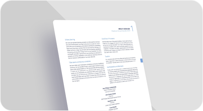 GROUP OVERVIEW Property portfolio as of December 31, 2017 1 Urban planning Condition of the assets We have not studied planning consents or other permits and have We have taken note of the general condition of each asset during our assumed that the assets have been built and are occupied and used in inspection. Our engagement does not include a building or structural conformity with all necessary authorizations and that any outstanding survey but we have indicated in our report, where applicable, any legal issues have been resolved. We have assumed that the layout of maintenance problems which were immediately apparent during our assets conforms to legal requirements and town planning regulations, inspection. The assets have been valued based on the information concerning among other things the structural materials, fire safety provided by the Company according to which no deleterious material and health and safety. We have also assumed that any extensions in was used in their construction. progress are being undertaken in line with town planning rules and that all necessary authorizations have been obtained. Taxation Title deeds and tenancy schedules Our valuations were performed without taking into account potential sales or legal fees or taxes which would come into effect in the case We have relied upon the tenancy schedules, summaries of additional of a transfer. The rental and market values produced are net of VAT. revenues, non recoverable charges, capital projects and the business plans which were provided to us. We have assumed, with the exception Confidentiality and disclosure of what may be mentioned in our individual asset reports, that the assets are not inhibited by any restriction which could impede a sale Finally, and in accordance with our standard practice we confirm that and that they are free from any restrictions or charges. We have not our valuation reports are confidential and are addressed solely to the read the title deeds and have taken as correct the rental, occupational Company. We accept no liability to third parties. Neither the whole and all other pertinent information that has been provided to us by reports, nor any extracts may be published in a document, declaration, the Company. memorandum or statement with any third party without our written consent as regards the form and context in which this information may appear. In signing this Summary Report, the valuation firms accept no liability for the valuations carried out by the other firms. Jean-Philippe CARMARANS Head of Valuation France Cushman & Wakefield Jean-Claude DUBOIS Chairman BNP Paribas Real Estate Valuation France Gareth SELLARS Chairman Jones Lang LaSalle Expertises Anne DIGARD President Valuation CBRE KLÉPIERRE 2017 REGISTRATION DOCUMENT 23