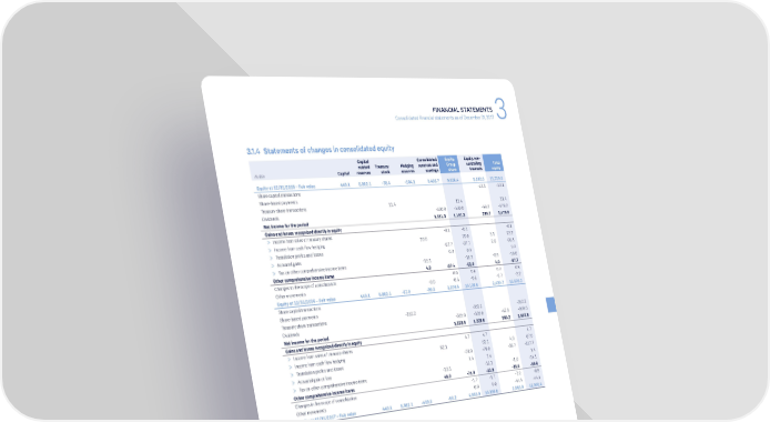 FINANCIAL STATEMENTS Consolidated financial statements as of December 31, 2017 3 3.1.4 Statements of changes in consolidated equity Capital Consolidated Equity, Equity, non- related Treasury Hedging reserves and Group controlling Total In €m Capital reserves stock reserves earnings share interests equity Equity at 12/31/2015 – Fair value 440.1 5,862.1 -78.4 -104.1 3,406.7 9,526.4 2,202.9 11,729.3 Share capital transactions -13.1 -13.1 Share-based payments Treasury share transactions 11.4 11.4 11.4 Dividends -530.0 -530.0 -48.2 -578.2 Net income for the period 1,191.3 1,191.3 285.7 1,476.9 Gains and losses recognized directly in equity > Income from sales of treasury shares -0.1 -0.1 -0.1 > Income from cash flow hedging 20.0 20.0 3.1 23.2 > Translation profits and losses -97.7 -97.7 2.6 -95.1 > Actuarial gains 0.3 0.3 0.3 > Tax on other comprehensive income items -15.1 -15.1 -0.9 -16.0 Other comprehensive income items 4.9 -97.4 -92.6 4.9 -87.7 Changes in the scope of consolidation 0.6 0.6 0.2 0.8 Other movements -0.0 -0.5 -0.5 -2.7 -3.2 Equity at 12/31/2016 – Fair value 440.1 5,862.1 -67.0 -99.2 3,970.6 10,106.6 2,429.7 12,536.2 Share capital transactions Share-based payments Treasury share transactions -352.2 -352.2 -352.2 Dividends -562.0 -562.0 -47.6 -609.6 Net income for the period 1,228.6 1,228.6 269.2 1,497.8 Gains and losses recognized directly in equity > Income from sales of treasury shares 4.7 4.7 4.7 > Income from cash flow hedging 62.1 62.1 4.9 67.0 > Translation profits and losses -78.0 -78.0 -39.7 -117.7 > Actuarial gain or loss 1.4 1.4 1.4 > Tax on other comprehensive income items -13.1 -13.1 -1.0 -14.1 Other comprehensive income items 49.0 -71.8 -22.8 -35.9 -58.6 Changes in the scope of consolidation -1.7 -1.7 -7.2 -8.9 Other movements 0.0 0.0 -44.4 -44.4 Equity at 12/31/2017 – Fair value 440.1 5,862.1 -419.2 -50.2 4,563.8 10,396.6 2,563.8 12,960.4 KLÉPIERRE 2017 REGISTRATION DOCUMENT 75